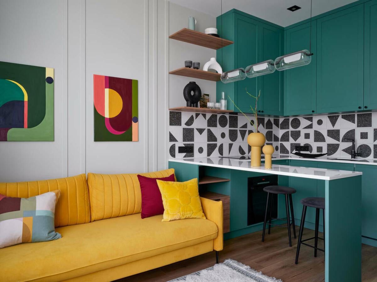 Представьте кухню, словно морской бриз ворвался в ваш дом. Спокойные, насыщенные бирюзовые оттенки доминируют в пространстве, создавая атмосферу умиротворенности и свежести. Фартук, облицованный бирюзовой мозаикой или плиткой с легким текстурированием, притягивает взгляд и добавляет глубины интерьеру. Кухонные шкафы, окрашенные в более светлый, пастельный бирюзовый оттенок, визуально расширяют пространство, делая кухню воздушной и просторной. Столешница из светлого дерева или светлого камня с едва заметными серыми прожилками вносит элемент натуральности и естественности.